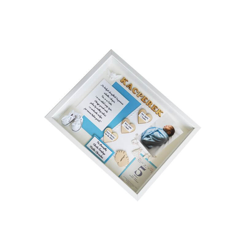 Przy zamówieniu należy podać podstawowe dane dziecka do umieszczenia widniejące w oferowanym wzorze m.in. imię, datę urodzenia, datę chrztu, wagę, wielkość, godzinę narodzin , miejscowość i inne. Każda ramka jest unikatowa i oryginalna dlatego na etapie zamówienia istnieje możliwość modyfikacji dodatków i umieszczenia innych, dodatkowych informacji takich jak np. imiona rodziców, imiona rodzeństwa, pierwszy uśmiech, pierwsze kroki, pierwszy ząbek, cytat, miejscowość, znak zodiaku i wiele innych.
