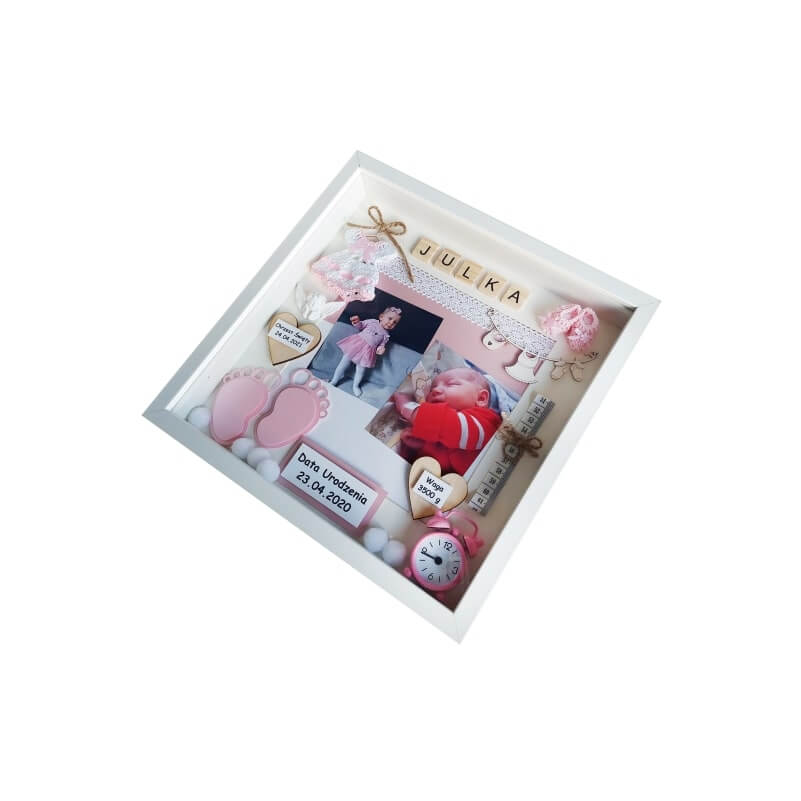Przy zamówieniu należy podać podstawowe dane dziecka do umieszczenia widniejące w oferowanym wzorze m.in. imię, datę urodzenia, datę chrztu, wagę, wielkość, godzinę narodzin , miejscowość i inne. Każda ramka jest unikatowa i oryginalna dlatego na etapie zamówienia istnieje możliwość modyfikacji dodatków i umieszczenia innych, dodatkowych informacji takich jak np. imiona rodziców, imiona rodzeństwa, pierwszy uśmiech, pierwsze kroki, pierwszy ząbek, cytat, miejscowość, znak zodiaku i wiele innych.