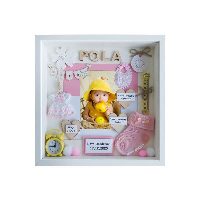 Przy zamówieniu należy podać podstawowe dane dziecka do umieszczenia widniejące w oferowanym wzorze m.in. imię, datę urodzenia, datę chrztu, wagę, wielkość, godzinę narodzin , miejscowość i inne. Każda ramka jest unikatowa i oryginalna dlatego na etapie zamówienia istnieje możliwość modyfikacji dodatków i umieszczenia innych, dodatkowych informacji takich jak np. imiona rodziców, imiona rodzeństwa, pierwszy uśmiech, pierwsze kroki, pierwszy ząbek, cytat, miejscowość, znak zodiaku i wiele innych.