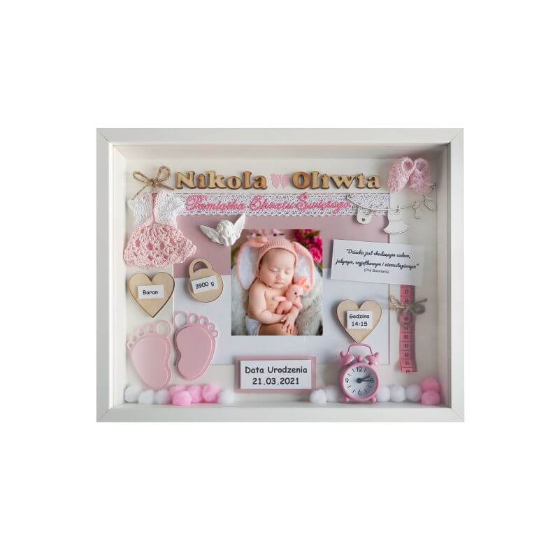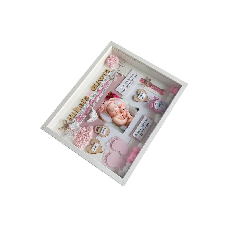 Przy zamówieniu należy podać podstawowe dane dziecka do umieszczenia widniejące w oferowanym wzorze m.in. imię, datę urodzenia, datę chrztu, wagę, wielkość, godzinę narodzin , miejscowość i inne. Każda ramka jest unikatowa i oryginalna dlatego na etapie zamówienia istnieje możliwość modyfikacji dodatków i umieszczenia innych, dodatkowych informacji takich jak np. imiona rodziców, imiona rodzeństwa, pierwszy uśmiech, pierwsze kroki, pierwszy ząbek, cytat, miejscowość, znak zodiaku i wiele innych.